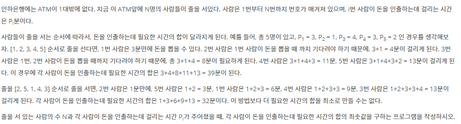 - 최솟값이 되는 경우는 가장 적은 시간 부터 해결하면 되는 문제입니다.