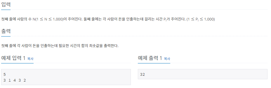 - 이 문제는 필요한 시간의 최솟값을 출력하는 문제입니다. 이때 최솟값이 되는 경우를 알아야 합니다.