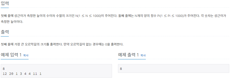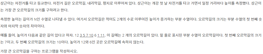 - for문을 돌리면서 이전 값보다 현재 값이 크면 오르막길이기 때문에 임시 변수에 더해주고