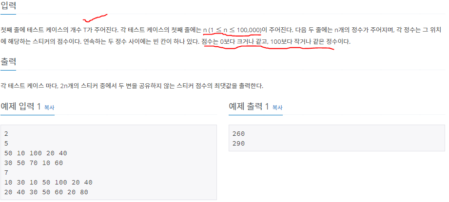 - dp 의 값의 크기를 봤을 때, 100000이고 100씩을 반복한다 하더라도 최대 1,000,000 이므로 int로도 충분히 담을 수 있다.