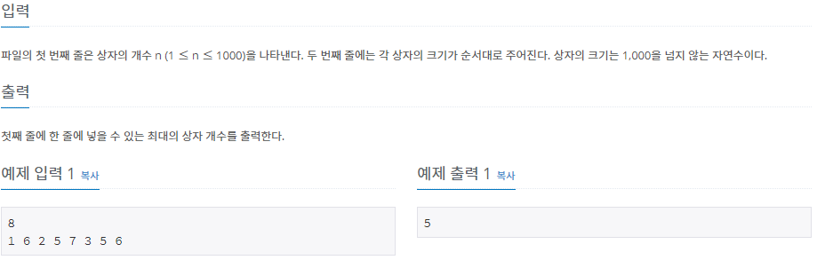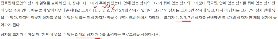 문제를 읽어 보면 최장 증가 수열을 이용해야 겠다는 생각이 들었습니다.