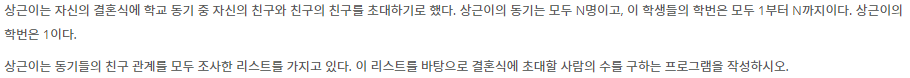 - 친구에 값을 아는 상태에서 친구의 친구를 찾기 위해서 for문을 한번 더 돌렸습니다.