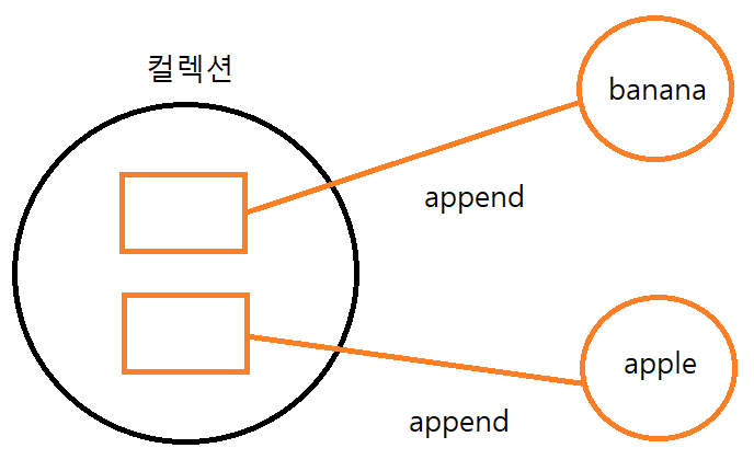 컬렉션으로 묶은 각각의 객체는 요소입니다. 컬렉션은 append() 메서드가 전달한 객체를 내부의 $objs 배열에 저장합니다.