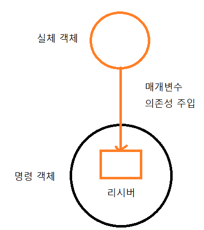 실제 객체는 클라이언트에서 미리 생성되고 명령 객체의 인자로 전달됩니다.