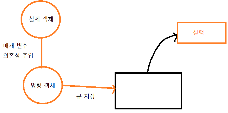 분리된 작업 객체와 실행 객체는 의존성 주입을 통해 명령 객체에 위임을 요청합니다. 명령 객체는 실행 메서드에서 위임된 객체를 실행함으로써 실제 동작을 처리합니다.