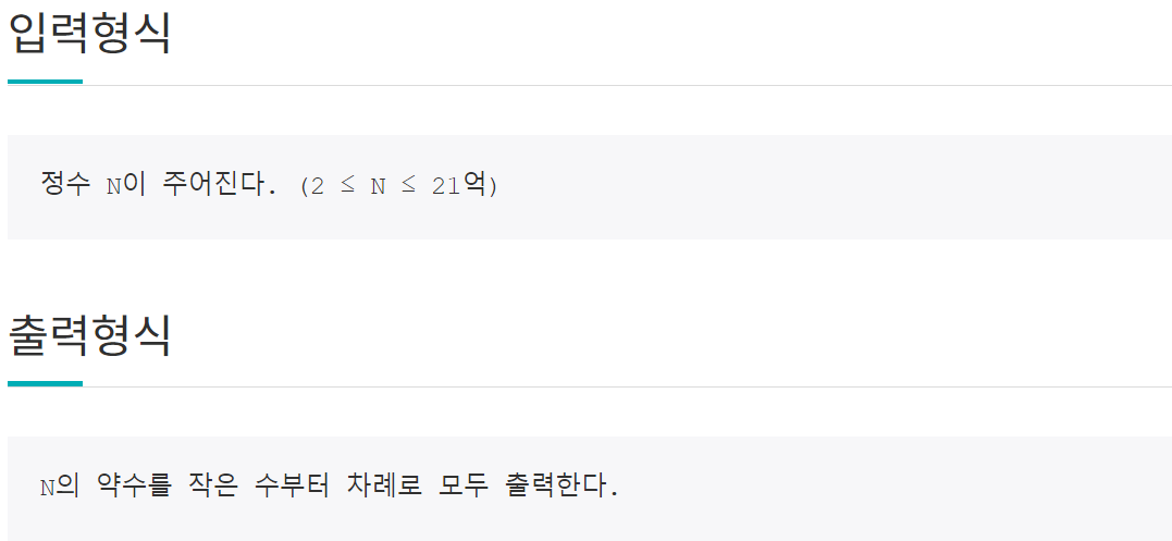 - 이 문제는 약수를 구하는 문제입니다.