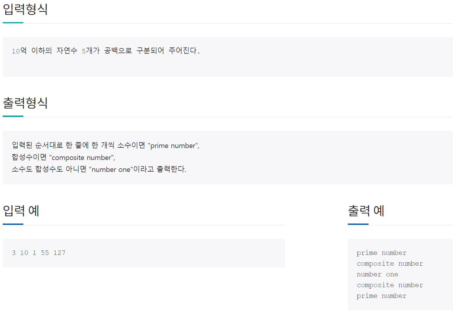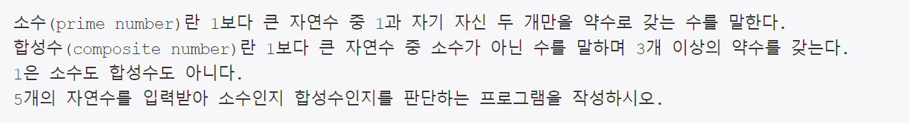 - 이 문제의 경우는 소수인지? 합성수인지? 둘다 아닌지를 구분하는 문제입니다.