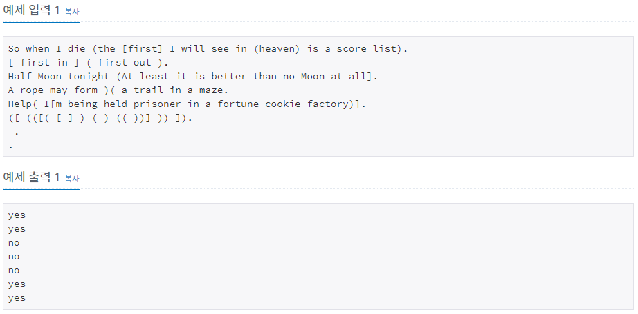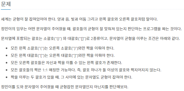 ( [ ) ] 의 순서는 틀리다는 것을 예외 처리 해줘야 한다.