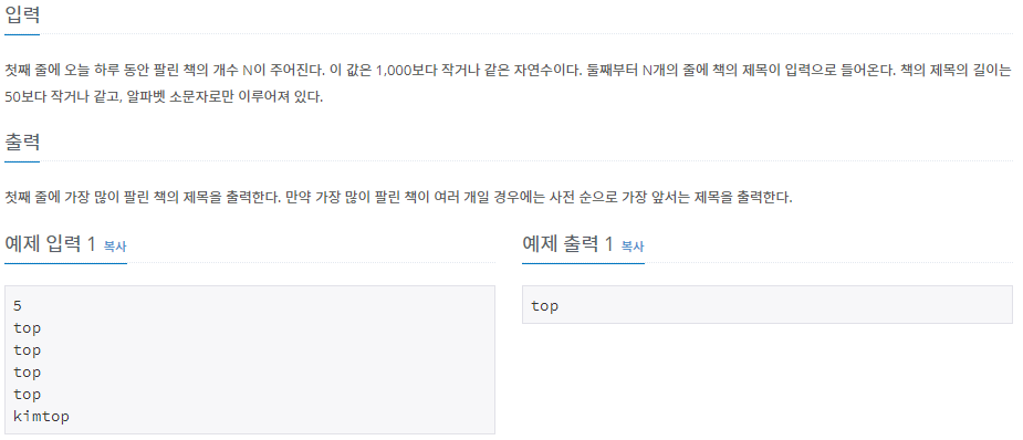 - 팔린 책의 수의 최댓값을 구한뒤, 그에 맞는 책의 제목을 찾았습니다.