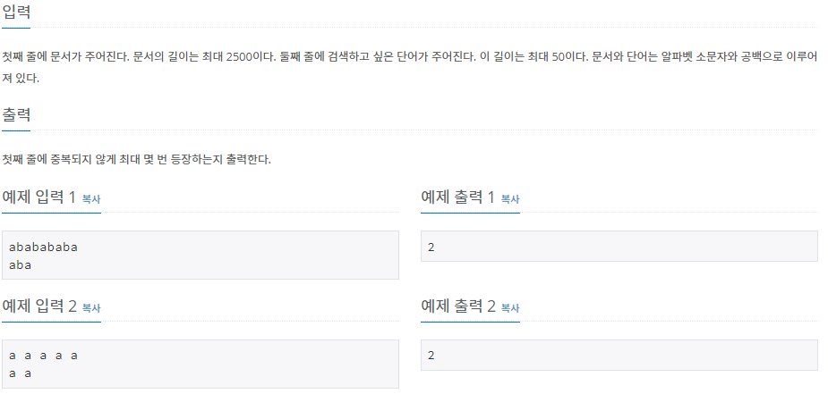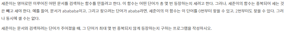 - 동일한 문자열을 찾았을 때, 문자열 만큼 넘기면 찾은 문자열 다음으로 인덱스가 변경이 되는데, for문이 끝나는 동시에 또 1을 증가시키기 때문에 1을 감소 시켜줍니다.