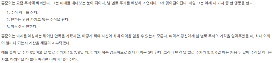 - 로직은 max 값을 만들고, 뒤에서 부터 max 값보다 더 큰 값이면 max 값을 바꾸고, 가만히 있는 작업을 진행합니다.