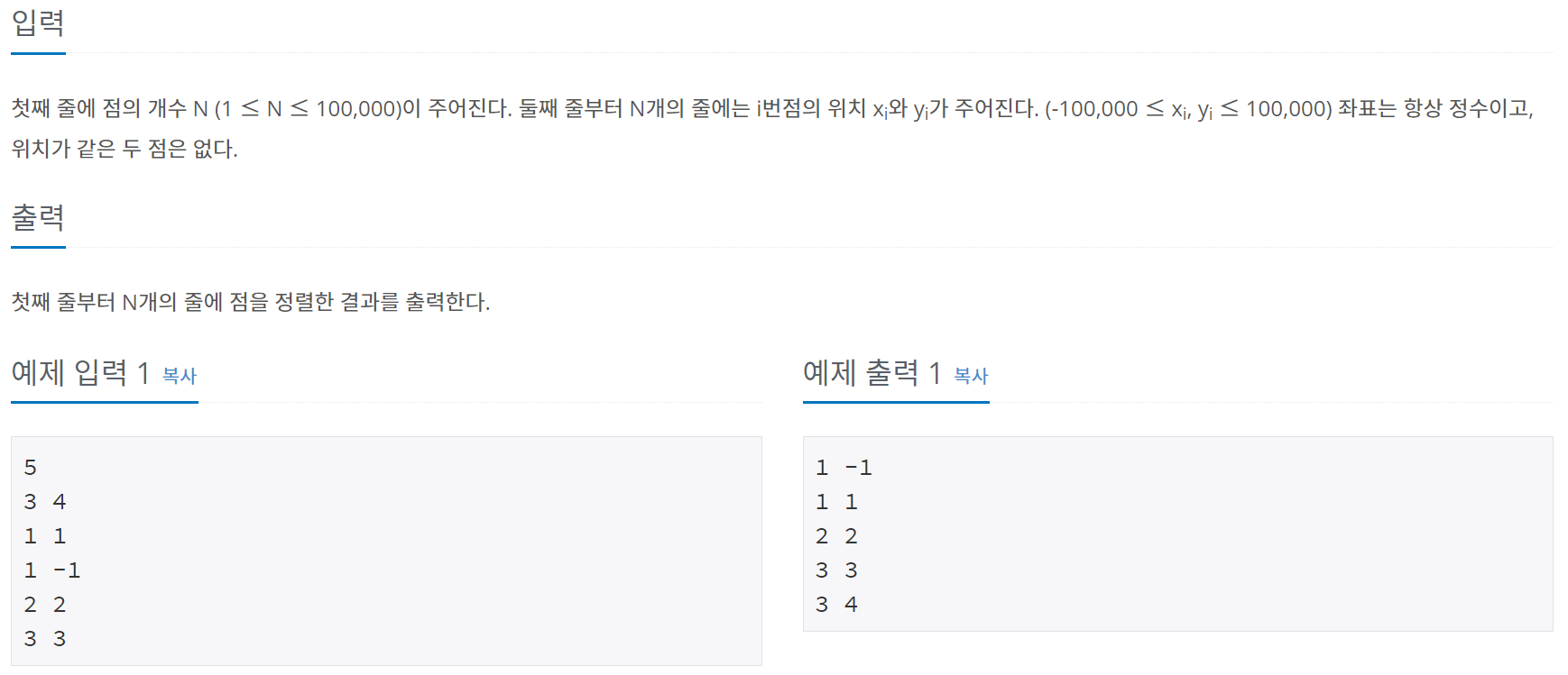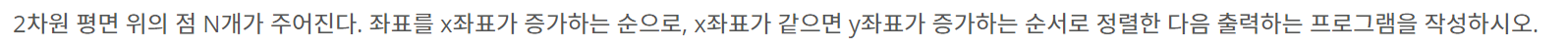 - 이 문제는 좌표를 정렬하는 문제입니다.