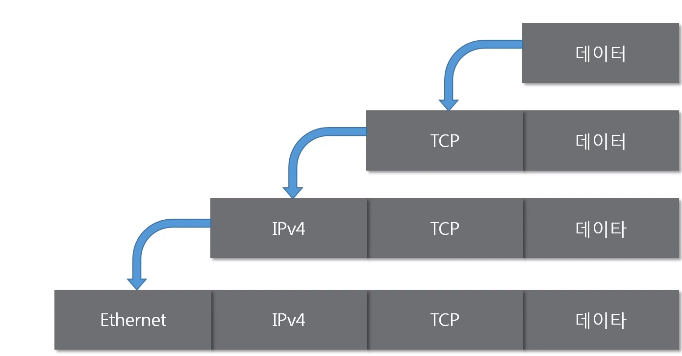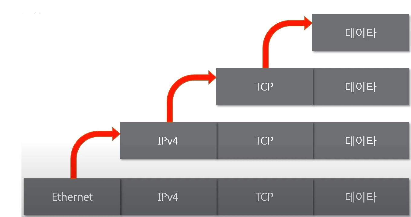 여러 프로토콜을 이용해서 최종적으로 보낼 때 패킷을 만드는 과정