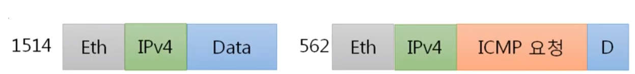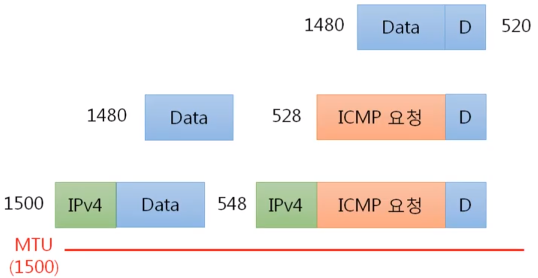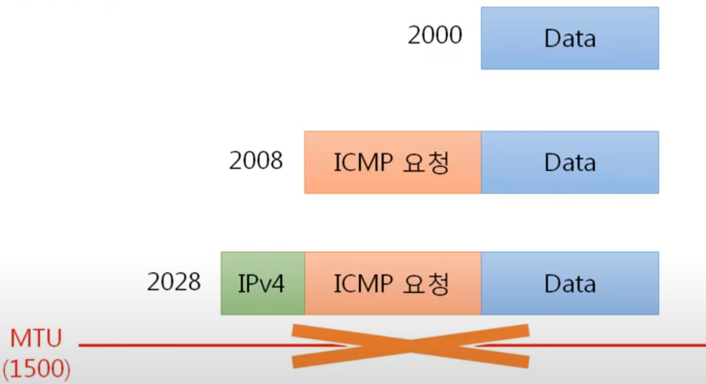 ICMP는 가장 마지막 데이터에 붙여서 전송을 해줍니다.