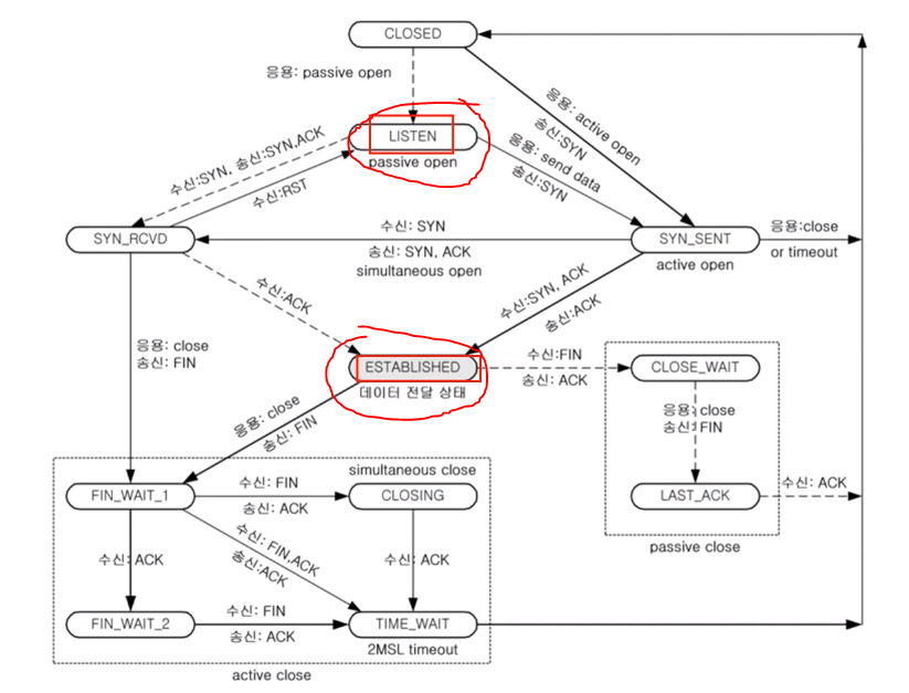 TCP를 이용한 데이터 통신을 할 때 프로세스와 프로세스를 연결하기 위해 가장 먼저 수행되는 과정입니다.