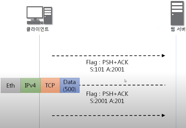 3. 받는 쪽에서 ACK 번호는 받는 SEQ 번호 + 데이터 크기 입니다.