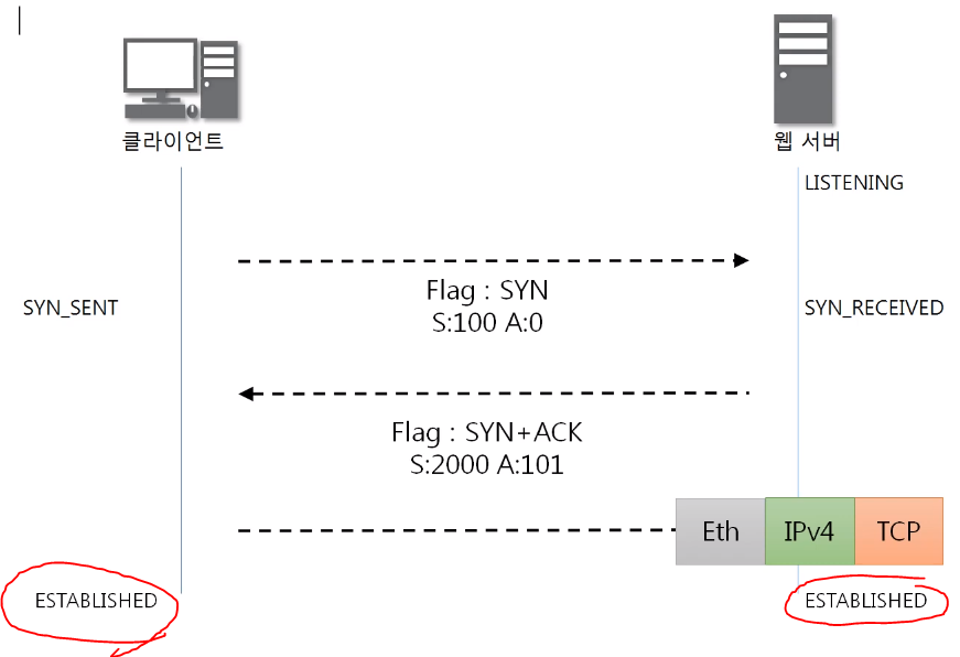 2. 서버가 클라이언트의 요청을 받아들이는 패킷을 보내고
