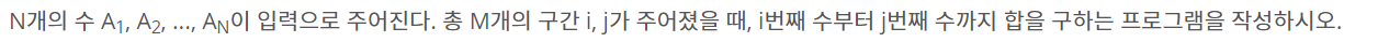 이 문제는 구간합을 구해서 해결하는 문제입니다.