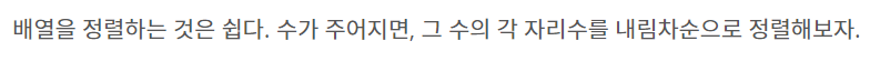 저는 자바에서 정렬로 제공되는 Arrays.sort를 이용해서 쉽게 해결할 수 있었습니다.