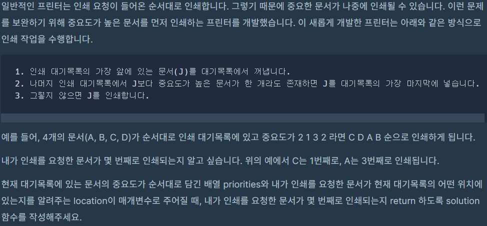 이 문제는 자료구조 중 큐를 이용하면 쉽게 해결할 수 있었습니다.