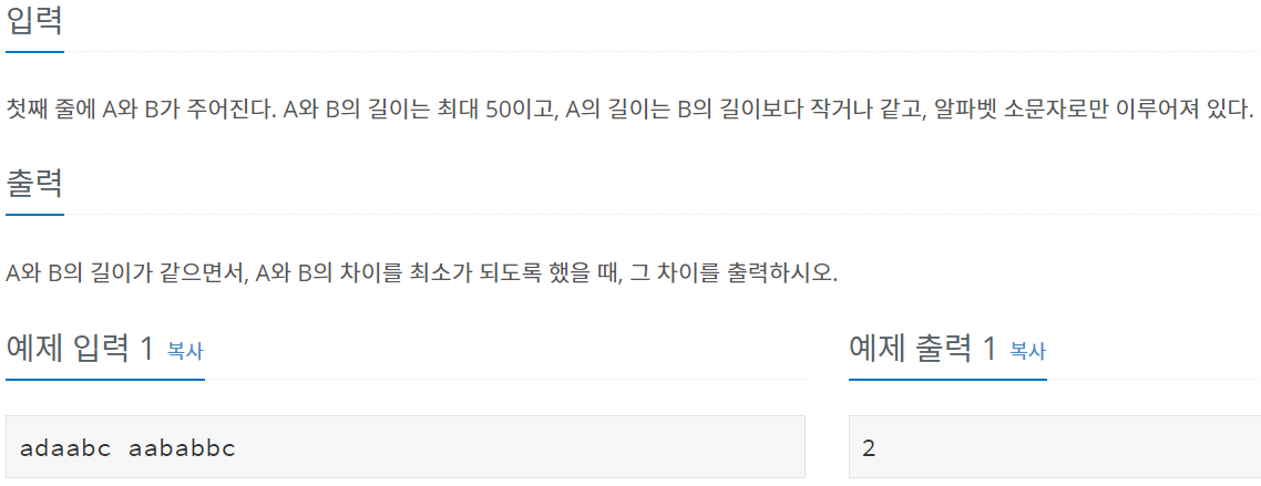 각 문자열의 차이 만큼 비교를 해주면 됩니다.