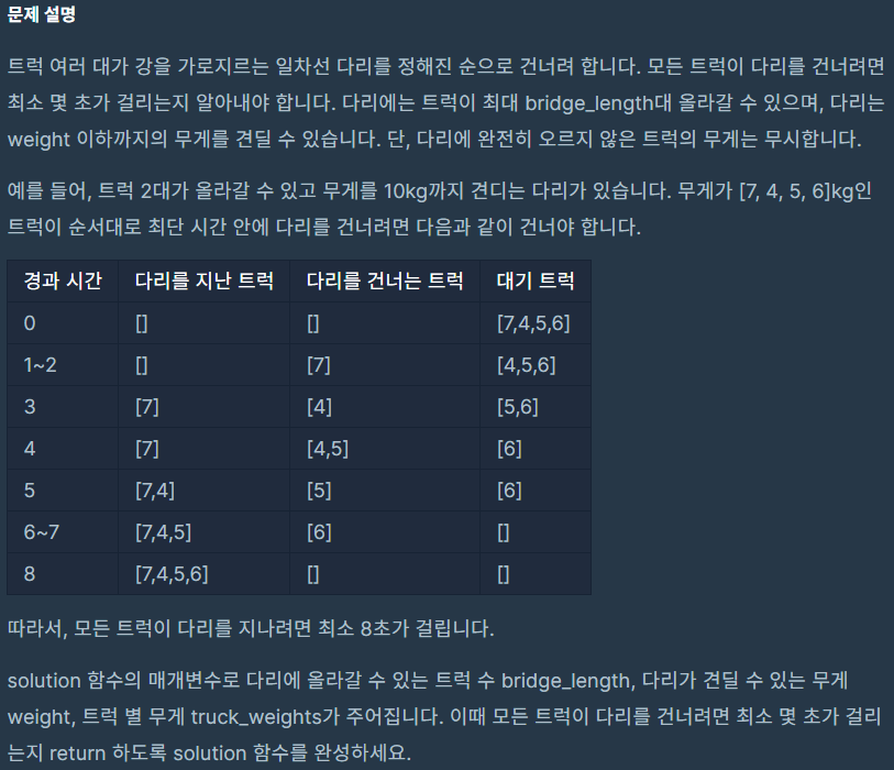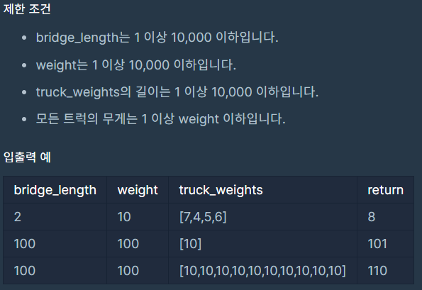 public int solution(int bridge_length, int weight, int[] truck_weights) {