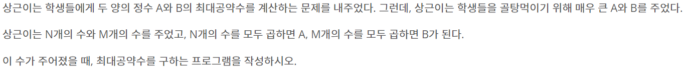 처음에는 각각의 수의 약수를 배열에 담고 위 아래 겹치는 것을 계산하는 방식으로 진행하려고 했습니다. 약수를 구하려면 만약 10억인 경우 10억 * (N+M) 의 for문을 돌아야 해서 시간 부족이 발생할듯 하여 방법을 바꿨습니다.