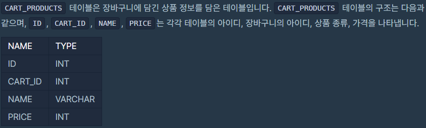 1. JOIN을 이용하는 경우 2개의 조회에 대한 정보를 조인하면 됩니다. Select Where 로 요거트를 찾은 경우와 Select Where 로 우유를 찾은 경우 이 두가지에 대해서 조인을 하고 CART_ID가 같은 경우를 찾아냅니다.