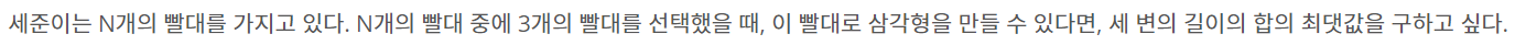 삼각형의 조건은 가장 큰 길이의 변 < 나머지 두개의 변의 합