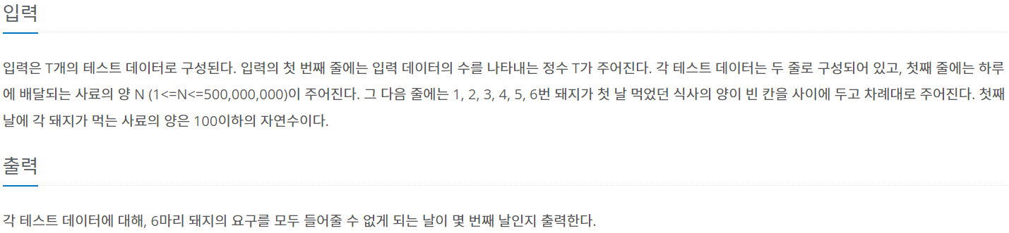 먼저 테스트케이스 수를 받아 오고 그 수 만큼 for문을 돌립니다. for문을 통해 각각의 수를 sum으로 받고, 모든 돼지들이 양 옆, 본인, 맞은편을 더하기 때문에 기존의 값에 4배가 됩니다.