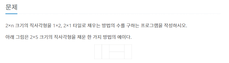 이 문제의 패턴을 보면 피보나치 처럼 수가 증가하는 것을 찾을 수 있다. 따라서 DP의 해결 법은 피보나치의 기본 원리를 이용하면 쉽게풀 수 있다.