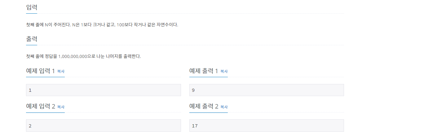 else if(j==9) dp[i][j] = dp[i-1][j-1]%1000000000;