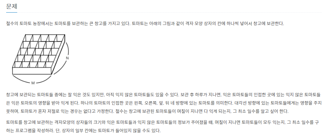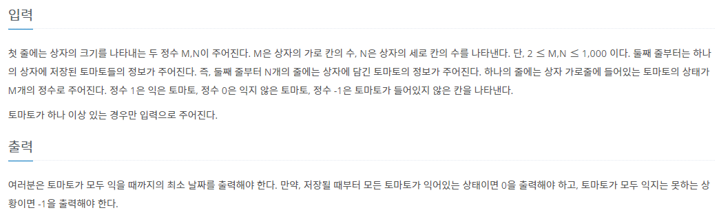 - Step3. BFS를 만들었습니다. 이때 while에서는 사방탐색을 통해서 다음 익는 범위를 구해서 해결했습니다.