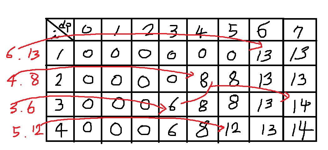 dp[i][j] = Math.max(dp[i-1][j], dp[i-1][j-b[i].w]+b[i].v);