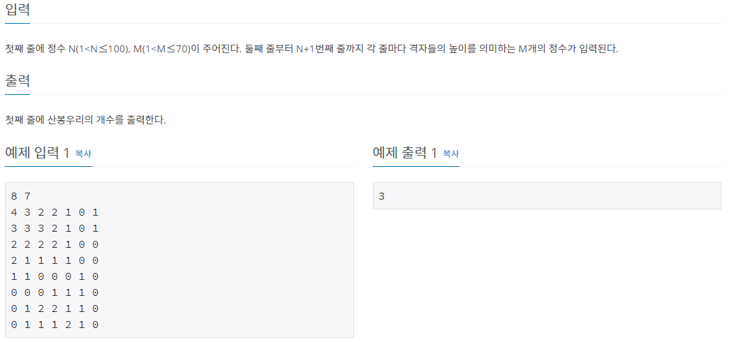 - 산봉우리가 가장 높은 부분을 찾아서 값을 구하는 DFS 문제입니다.