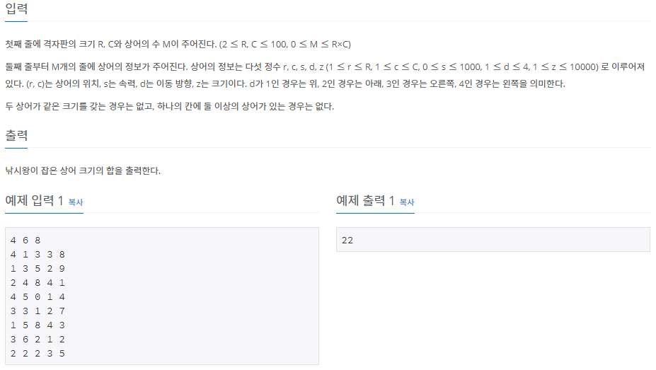 }//상어는 자기 속도만큼 모든 이동을 끝냈음. s.x, s.y에는 새로운 위치 값이 들어 있음