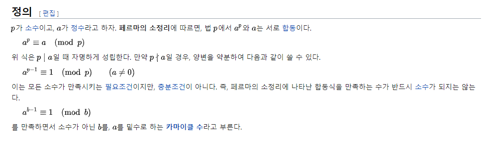 페르마의 소정리 - 위키백과, 우리 모두의 백과사전