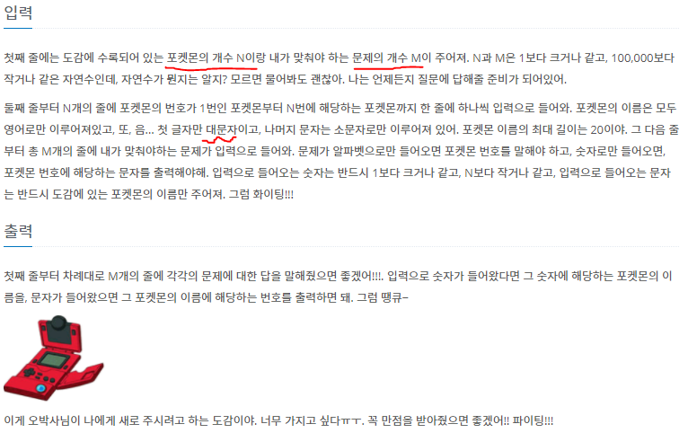 - HsahMap을 이용해서 포켓몬의 번호와 이름을 받았습니다. 또한 반대로도 받았습니다..