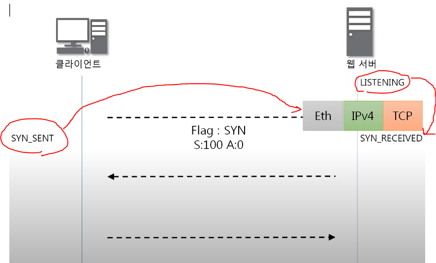 TCP를 이용한 데이터 통신을 할 때 프로세스와 프로세스를 연결하기 위해 가장 먼저 수행되는 과정입니다.