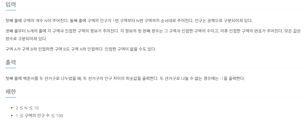 백준_17471 게리맨더링(자바) / BFS + 조합